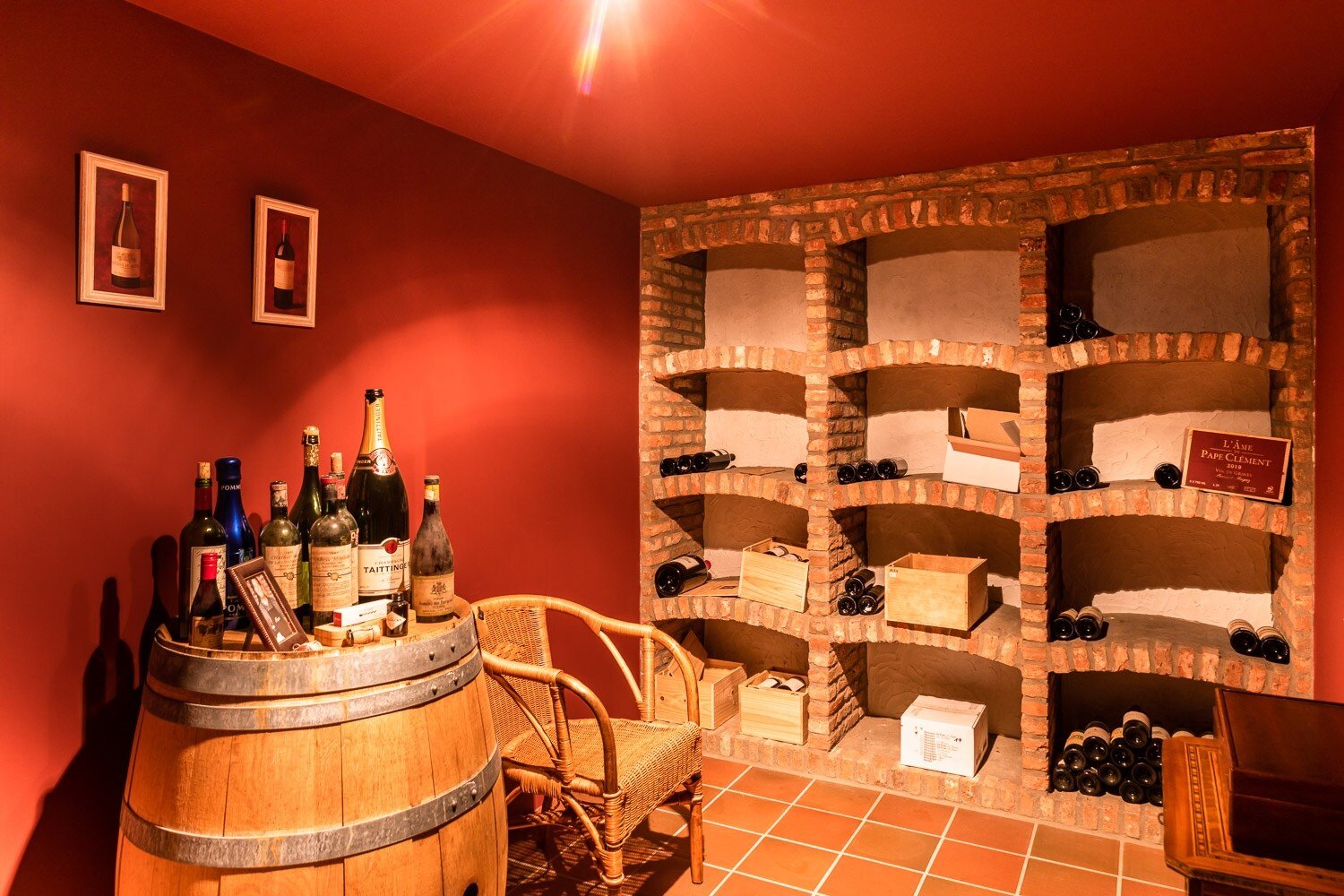 De kelderverdieping is volledig afgewerkt en omvat onder meer een wijnkelder en drie afzonderlijke bergingen.
