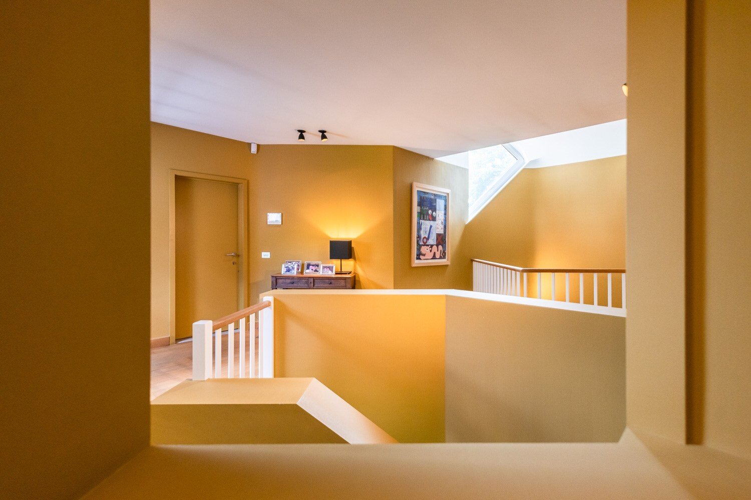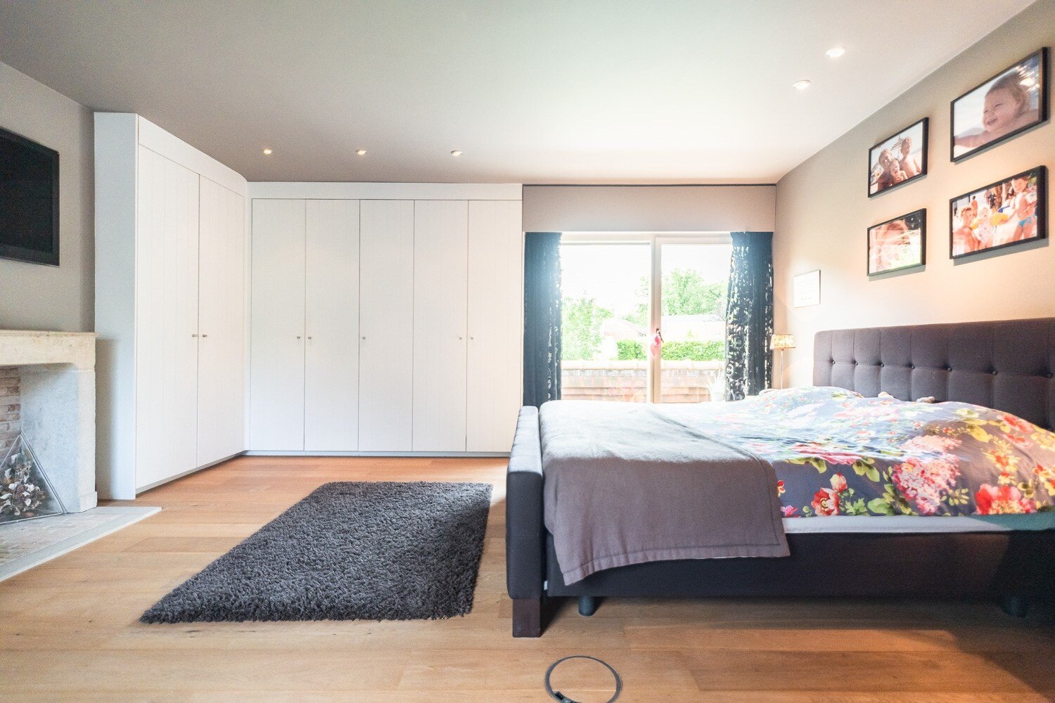 Op de eerste verdieping bevindt zich de masterbedroom met open haard, terras en luxueuze badkamer. Daarnaast zijn er drie ruime slaapkamers met een bijkomende badkamer en een aparte studio met kitchenette, ideaal voor een inwonende au pair of conciërge.